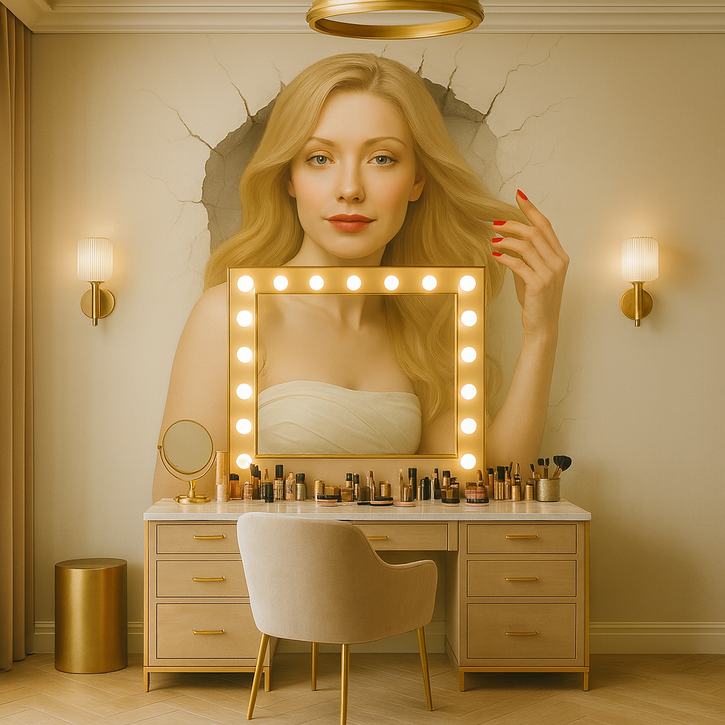 Transform your salon with this stunning ultra-HD 3D beauty face mural. Bold red lips, crystal-blue...