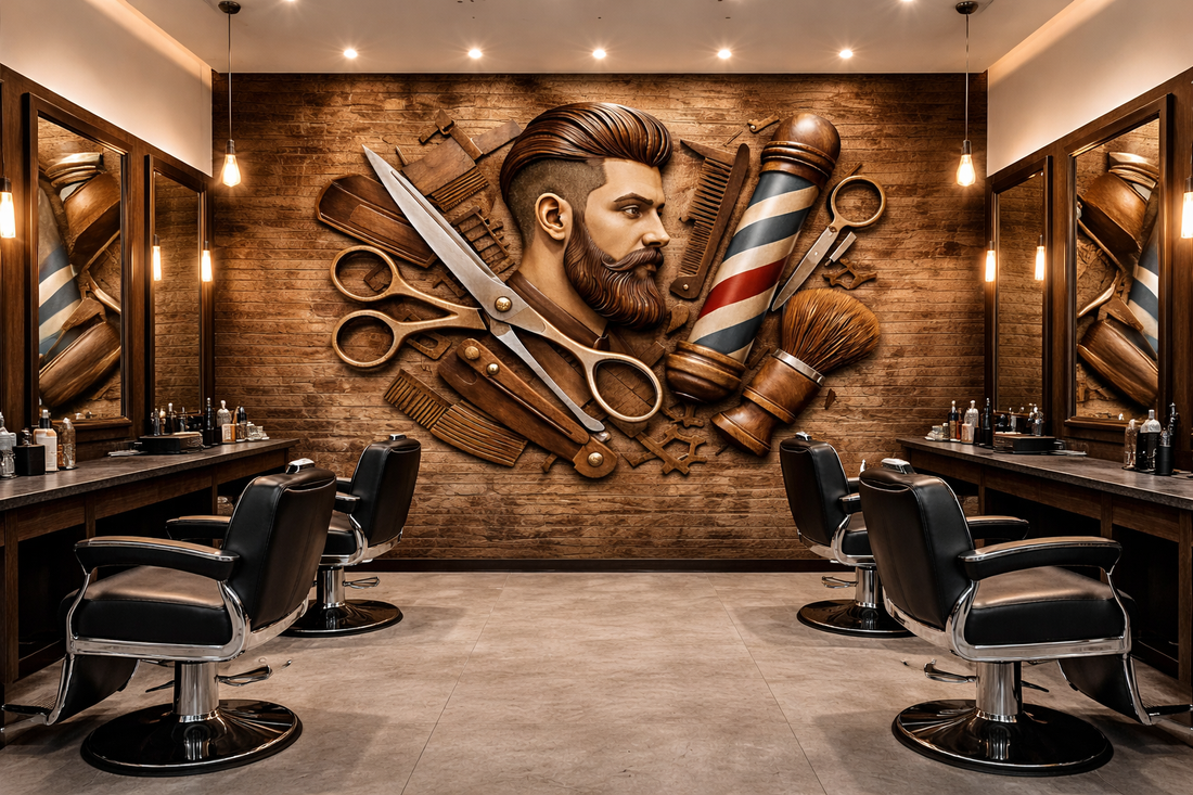 This is bespoke wallpaper, custom made to your exact wall measurements. A bold, modern barbershop...