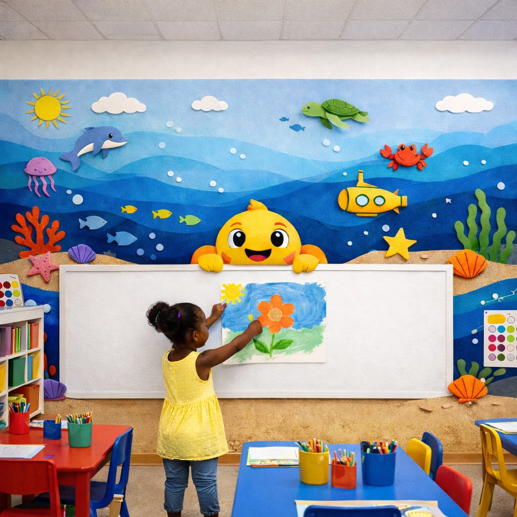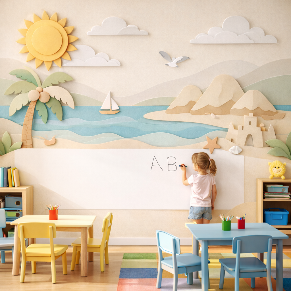 Wipeable Coastal Learning Wallpaper
