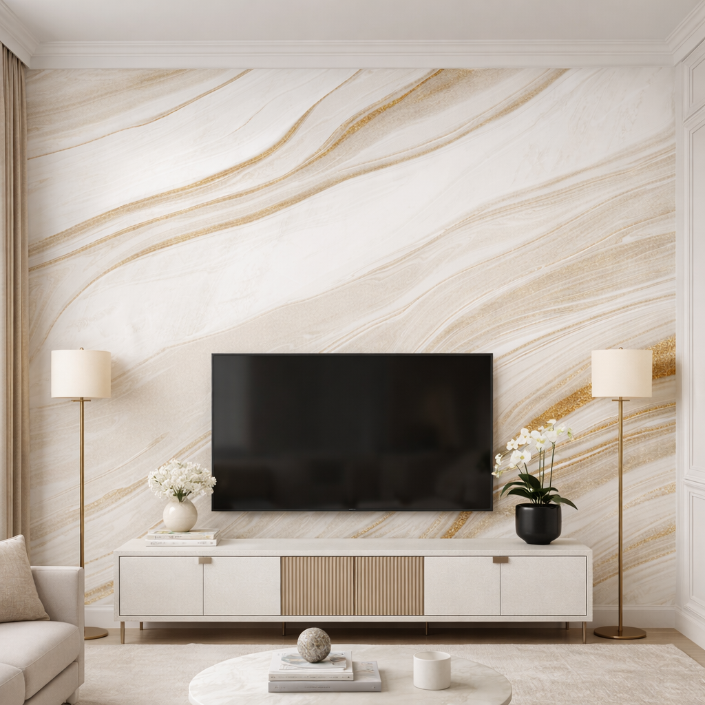 This is bespoke wallpaper, custom made precisely to your wall measurements. Soft white marble flows...