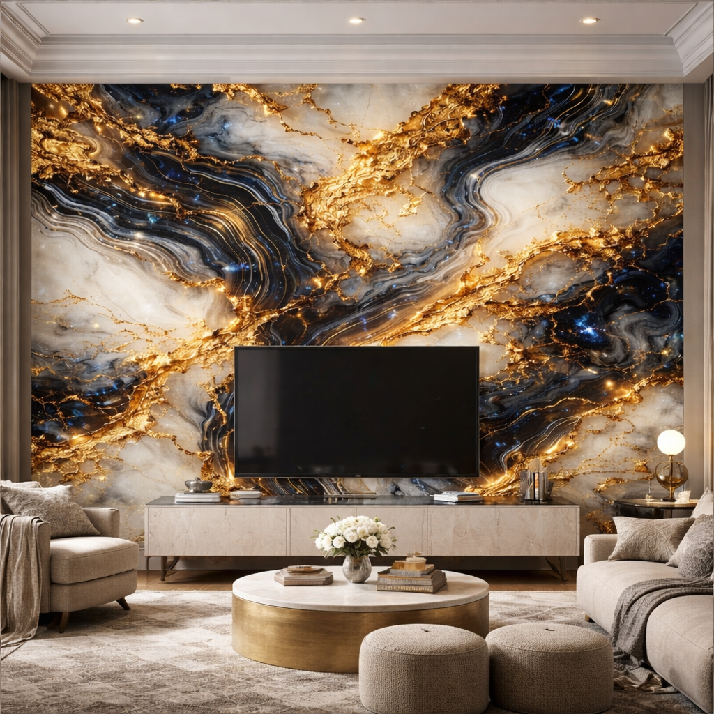 Designed to command attention, this mural brings a sense of opulence and movement, making it perfect for luxury homes, hotels, commercial spaces, lounges, offices, showrooms, and high-end interiors. The elegant contrast and fluid design add depth, warmth, and a premium architectural feel to your walls.