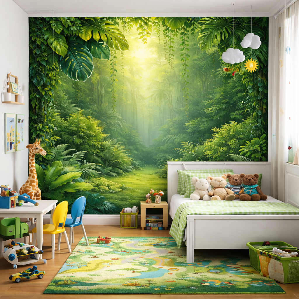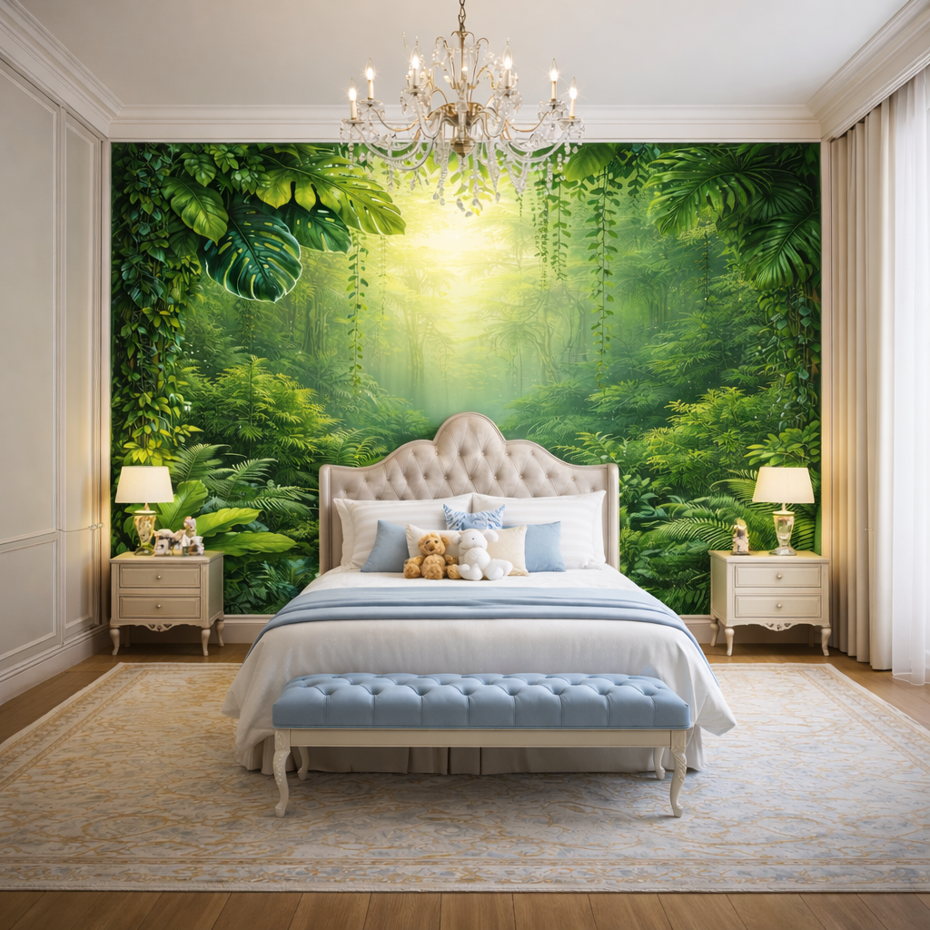 This luxury rainforest design creates a peaceful, immersive atmosphere while making a bold visual statement in homes, boutique hotels, play cafés and learning spaces.