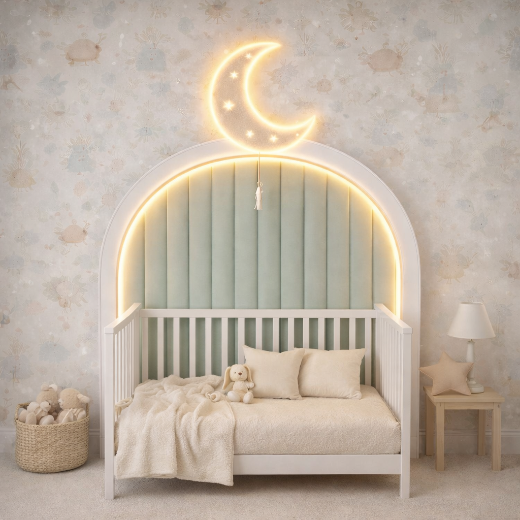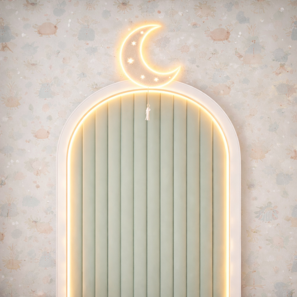 This glowing crescent moon arch creates a calm, magical space — perfect for nurseries, early years classrooms, children’s bedrooms, soft play spaces and boutique family hotels seeking luxury and warmth.