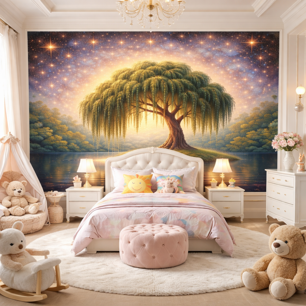 This magical glowing willow tree under a starlit sky transforms nurseries, early years classrooms, children’s bedrooms, learning corners, soft play spaces and even boutique hotels into calm, imaginative storybook spaces.