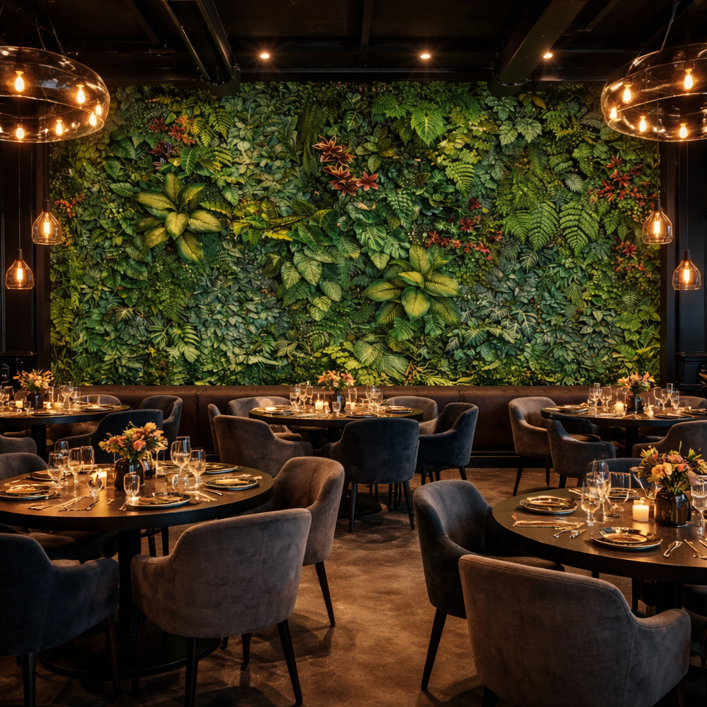 Transform interiors with a rich, immersive botanical statement. This luxury artificial foliage wallpaper mural delivers depth, texture, and vibrant greenery without maintenance—perfect for creating standout spaces that feel fresh, refined, and high-end.
