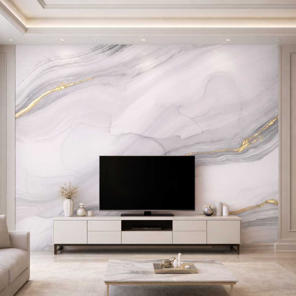 Soft marble waves in warm ivory tones flow effortlessly through this design, finished with delicate gold accents that catch the light with understated elegance.