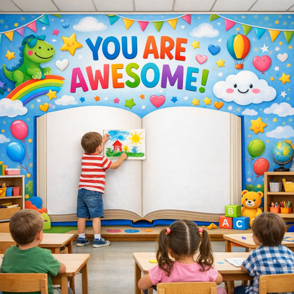 No more peeling stickers, chipped paint or cluttered walls covered in tape marks. Children can proudly display their artwork neatly inside the built-in white space, keeping rooms tidy while encouraging creativity.